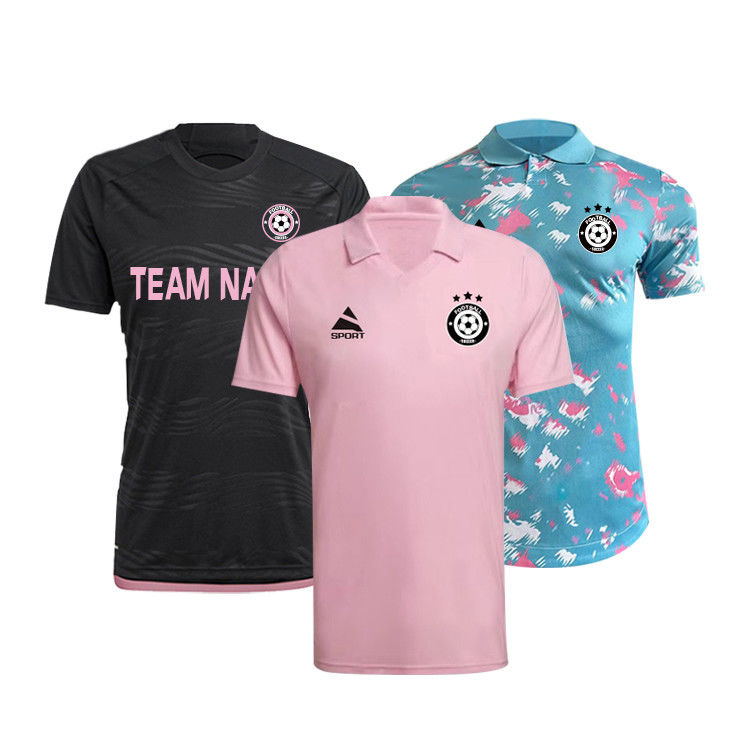 কাস্টম সাদা পলিয়েস্টার শ্বাস প্রশ্বাসের পুরুষদের খেলাধুলা ফুটবল জার্সি ফুটবল ইউনিফর্ম সেট কালো, গোলাপী এবং নীল